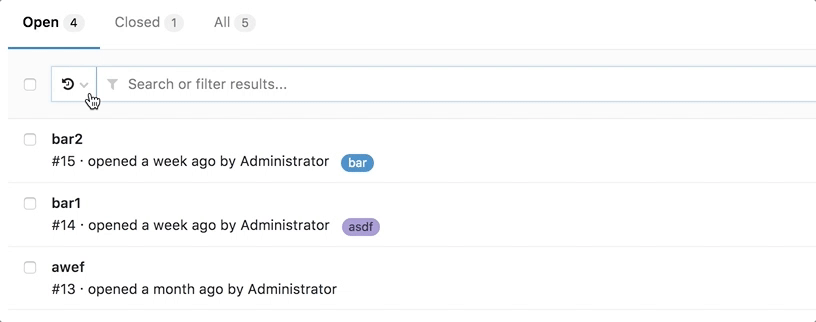 Click the menu bar, then Issues or Merge Requests, which work in the same way, therefore, the following notes are valid for both.